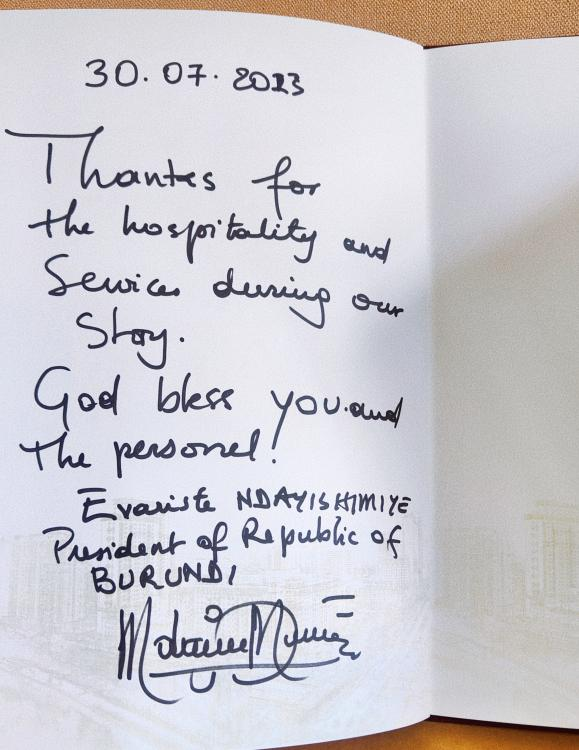 布隆迪总统·恩达伊施米耶谢谢信